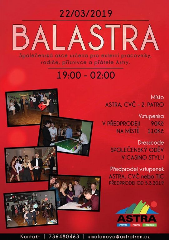 Společenský večer pro příznivce Astry. 3. ročník zábavného večera pro dospělé. Čeká na vás hudba (DJ), zábavné hry, občerstvení, taneční vystoupení. Společenský oděv je podmínkou.