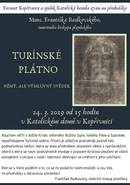 Kopřivnice 24. 3. 2019 od 15:00 PŘEDNÁŠKA TURÍNSKÉ PLÁTNO