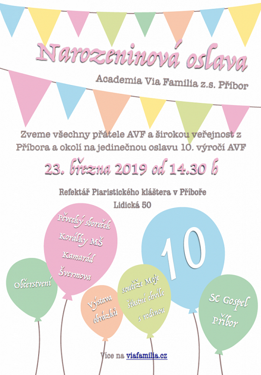 Příbor 23. 3. 2019 od 14:30 NAROZENINOVÁ OSLAVA ACADEMIA VIA FAMILIA Z. S. PŘÍBOR