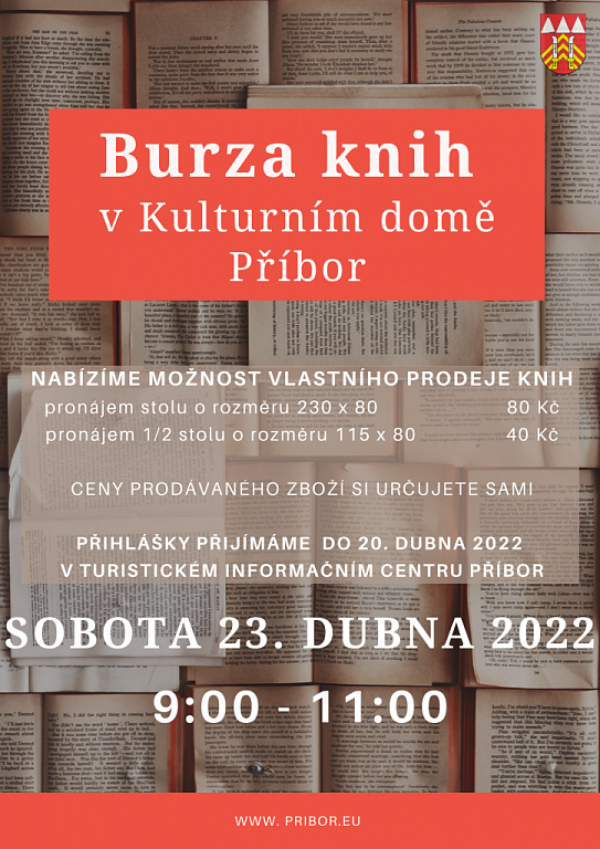 Příbor 23. 4. 2022 od 9:00 – BURZA KNIH V KULTURNÍM DOMĚ