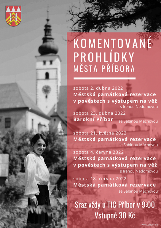 Komentovaná prohlídka města Příbora s průvodkyní Sabinou Máchovou.