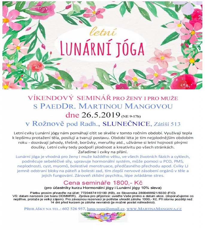 Rožnov pod Radhoštěm 26. 5. 2019 od 9:00 LUNÁRNÍ JÓGA