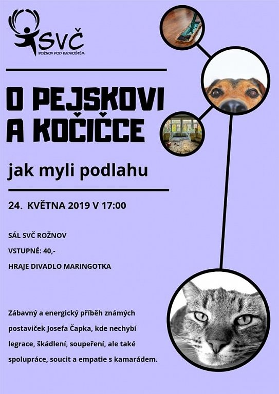 Rožnov pod Radhoštěm 24. 5. 2019 od 17:00 O PEJSKOVI A KOČIČCE – JAK MYLI PODLAHU