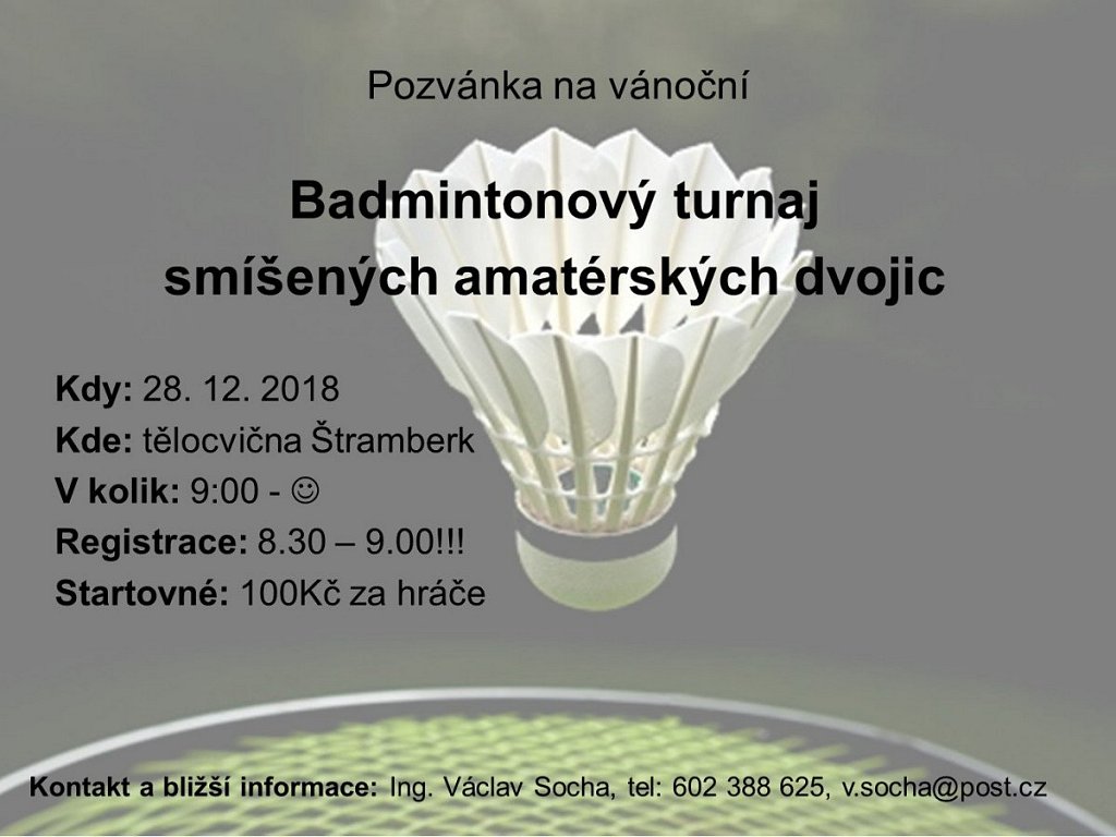 Štramberk 28. 12. 2018 od 09:00 BADMINTONOVÝ TURNAJ SMÍŠENÝCH MATÉRSKÝCH DVOJIC