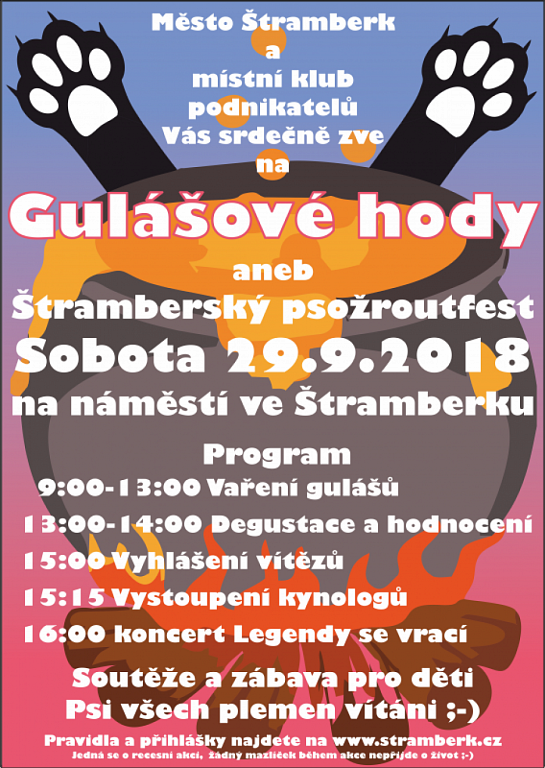 Štramberk, 29. 9. 2018 od 9:00 GULÁŠOVÉ HODY ANEB ŠTRAMBERSKÝ PSOŽROUTFEST