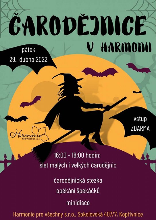 Kopřivnice 29. 4. 2022 od 16:00 do 18:00 ČARODĚJNICE V HARMONII