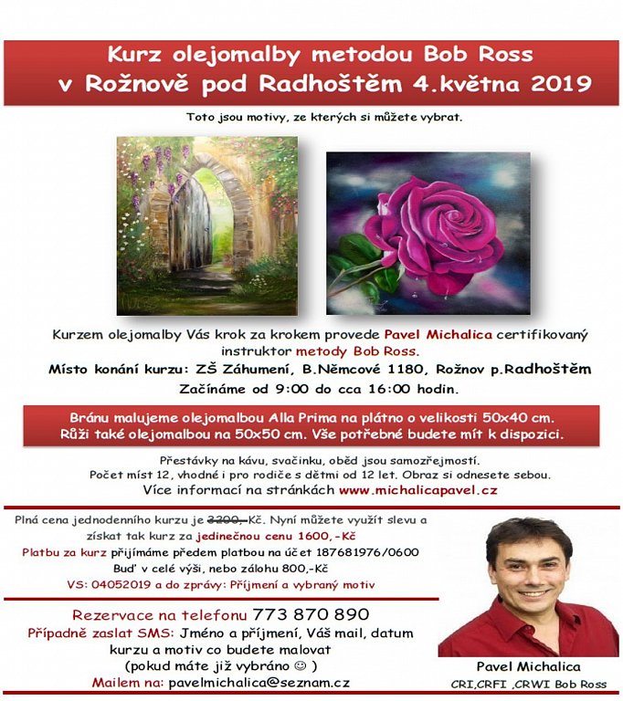 Rožnov pod Radhoštěm 4. 5. 2019 od 9:00 do 16:00 KURZ OLEJOMALBY METODOU BOB ROSS