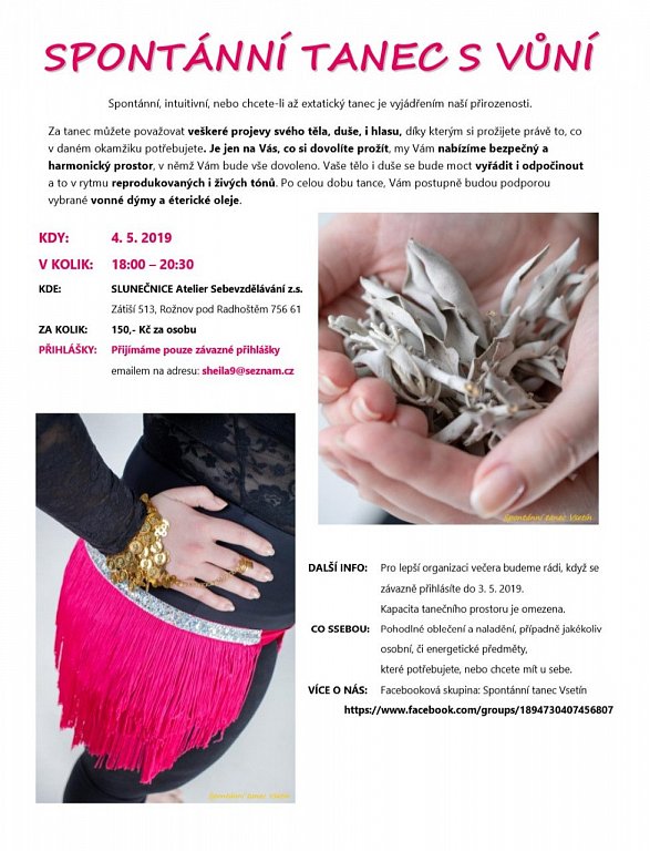 Rožnov pod Radhoštěm 4. 5. 2019 od 18:00 do 20:30 SPONTÁNNÍ TANEC S VŮNI