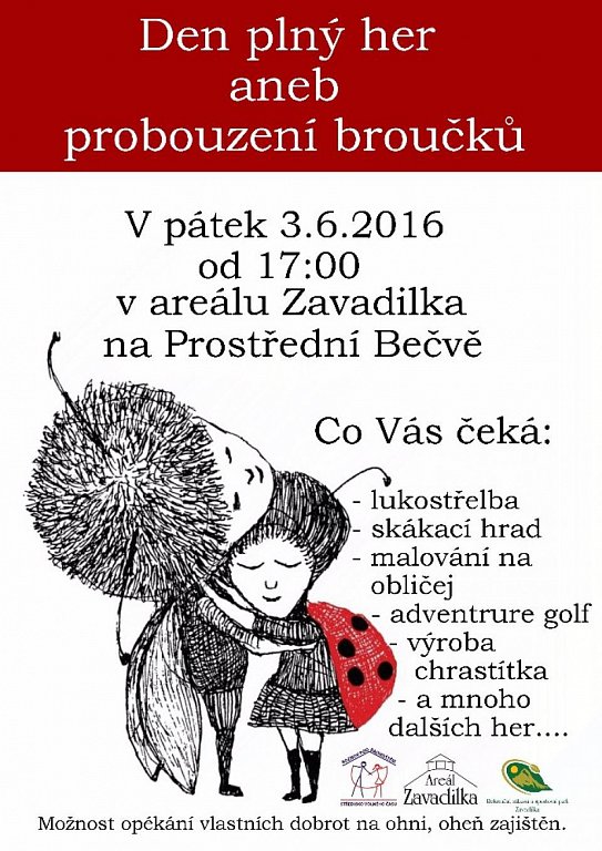 V pátek 3.6.2016 proběhne na Prostřední Bečvě zábavné odpoledne. Od 17:00 se můžete těšit na různé hry, soutěže, lukostřelbu, ale také si mžete vyzkoušet adventure golf a nebo si vyrobit chrastítko.