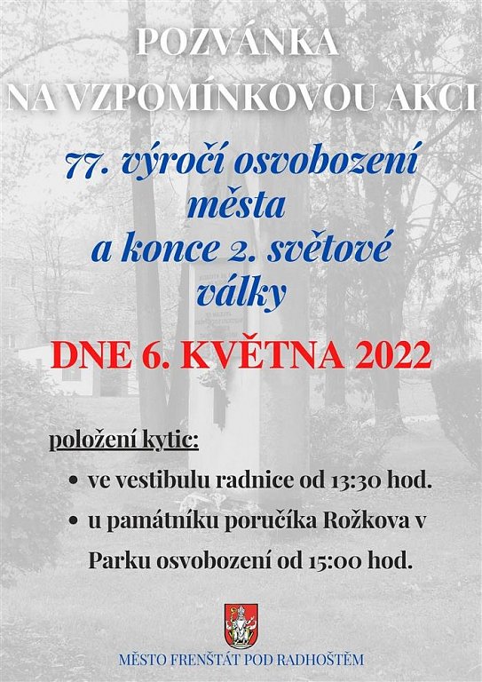 Vzpomínková akce - položení kytic, zve Město Frenštát pod Radhoštěm.