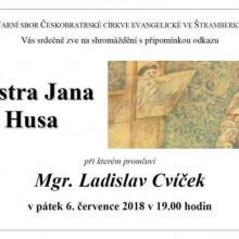 Shromáždění s připomínkou odkazu Mistra Jana Husa, na kterém promluví Mgr. Ladislav Cviček. Akce se koná na zahradě (za deště v modlitebně).
