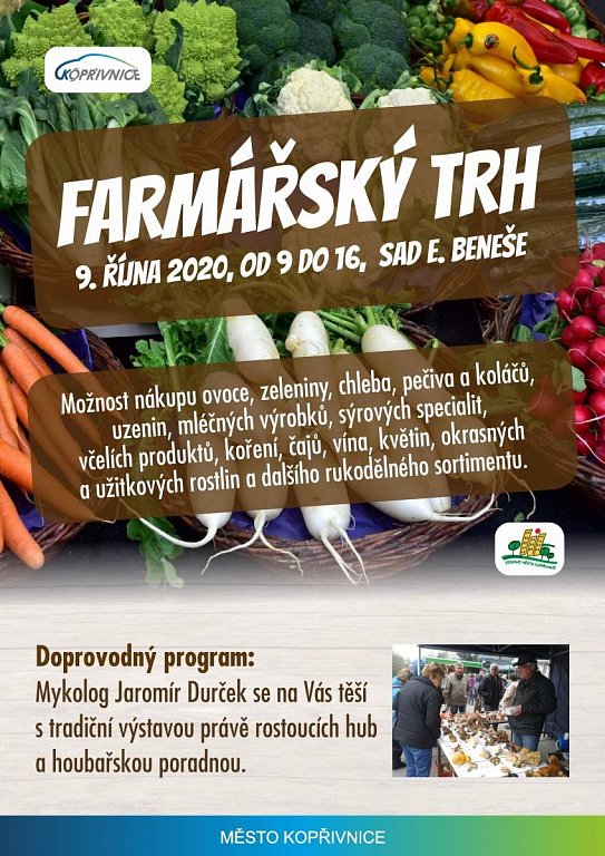 Kopřivnice 9. 10. 2020 od 09:00 do 16:00 FARMÁŘSKÝ TRH