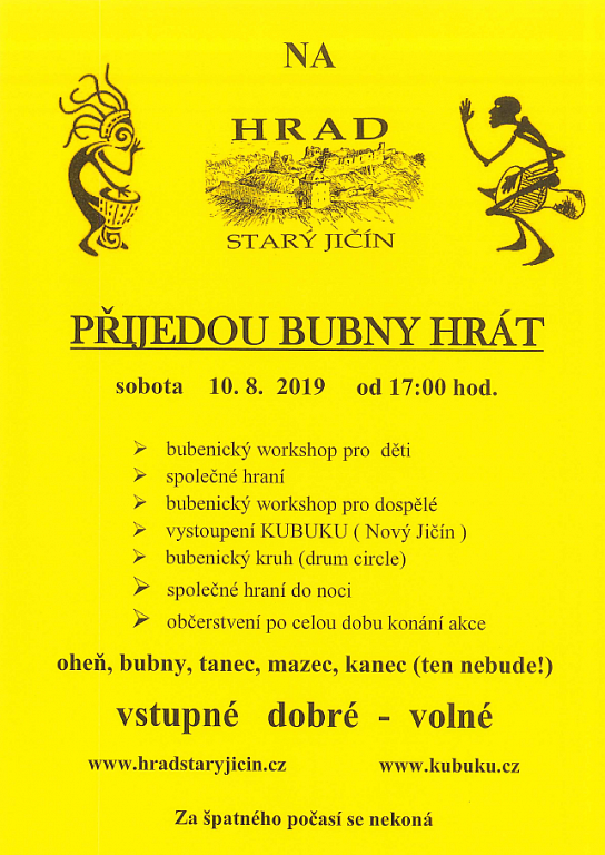 Starý Jičín 10. 8. 2019 od 17:00 PŘIJEDOU BUBNY HRÁT
