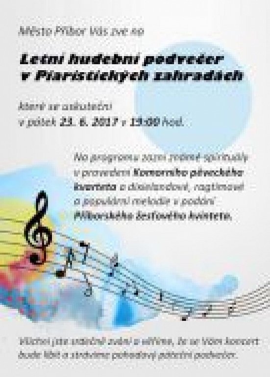 Příbor 23. 6. 2017 od 19:00 Letní hudební odpoledne v piaristických zahradách