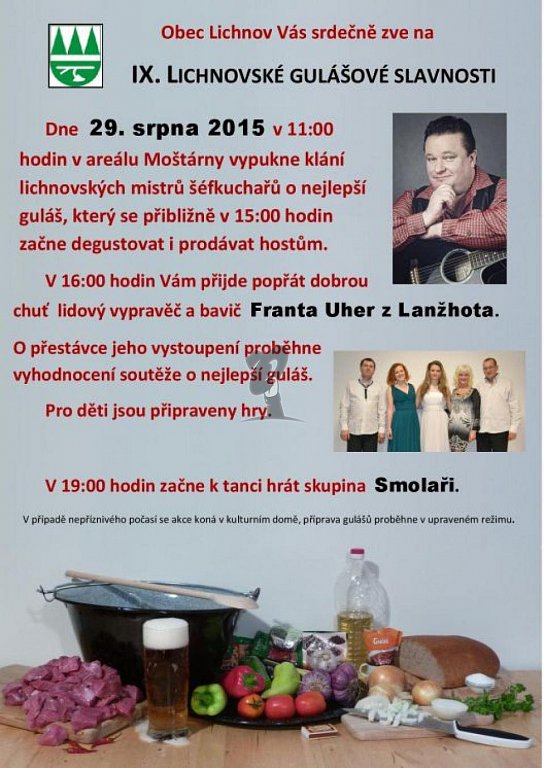 Frenštát pod Radhoštěm 29. 8. 2015 v 11:00 IX. LICHNOVSKÉ GULÁŠOVÉ SLAVNOSTI