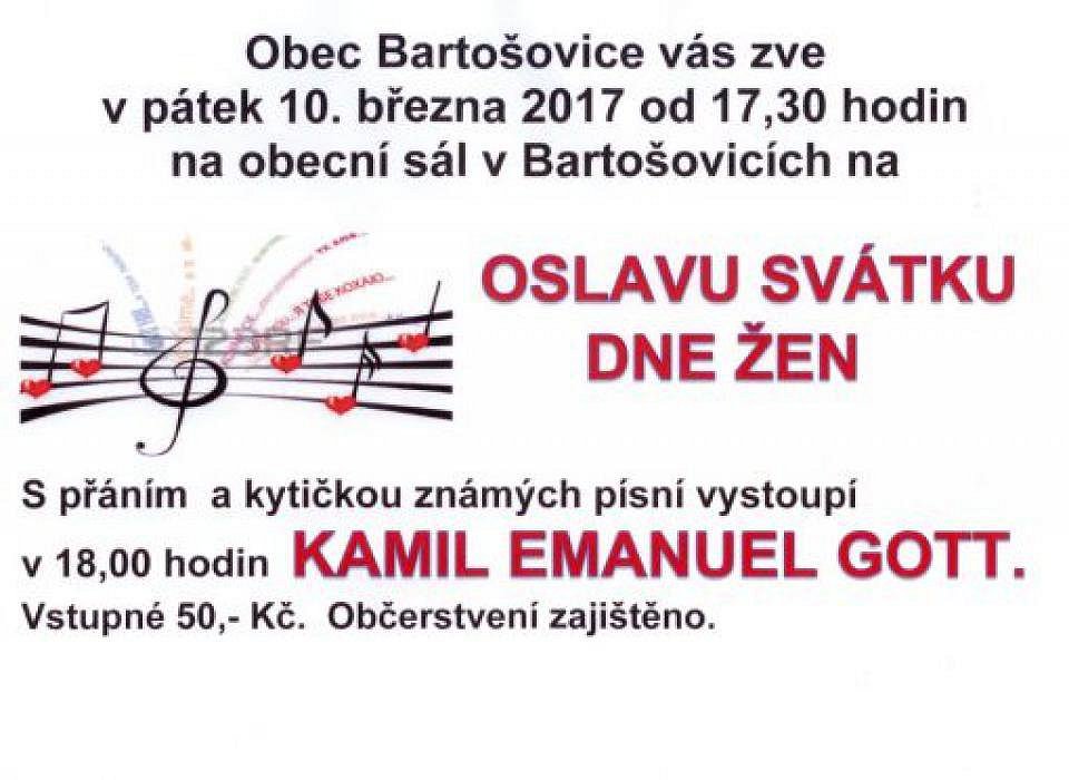 Bartošovice 10. 3. 2017 v 17:30 OSLAVA SVÁTKU DNE ŽEN