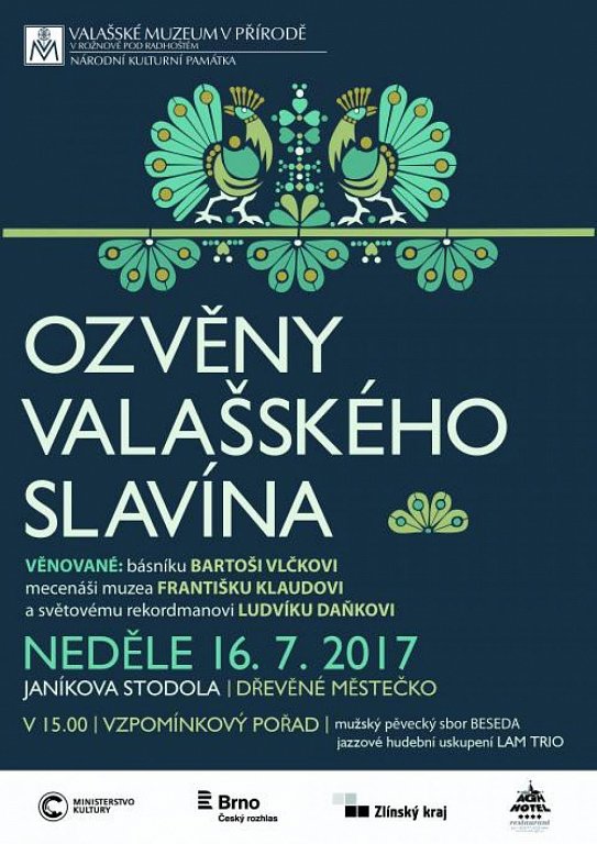 Rožnov pod Radhoštěm 15. 7. 2017 od 15:00 OZVĚNY VALAŠSKÉHO SLAVÍNA