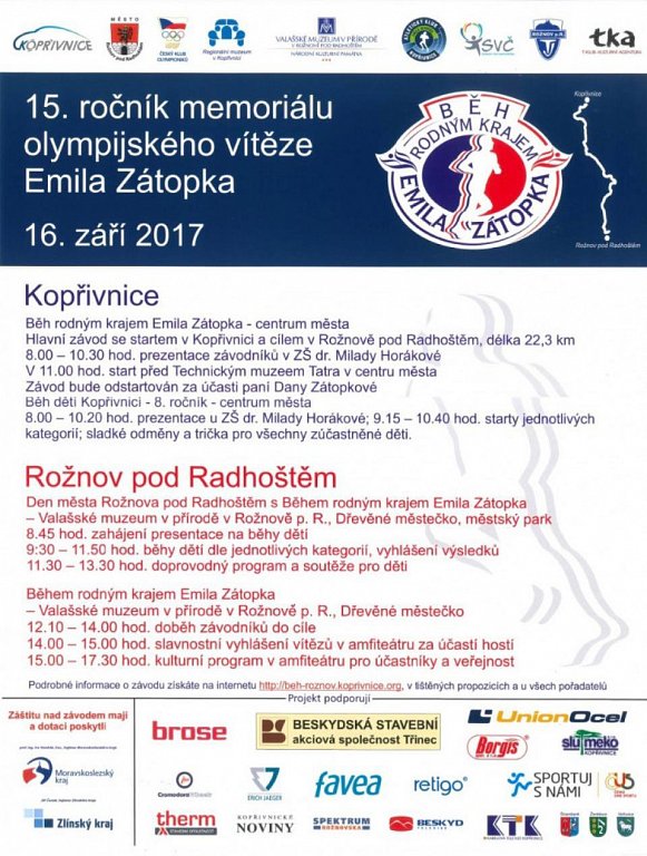 Kopřivnice 16. 9. 2017 od 8:00 BĚH RODNÝM KRAJEM EMILA ZÁTOPKA