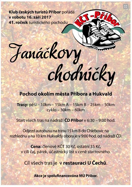 Příbor 16. 9. 2017 od 6:30 41. ROČNÍK TURISTICKÉHO POCHODU JANÁČKOVY CHODNÍČKY