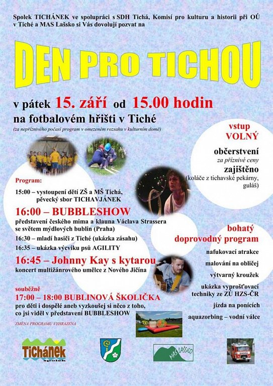 Za nepříznivého počasí program v omezeném rozsahu v kulturním domě