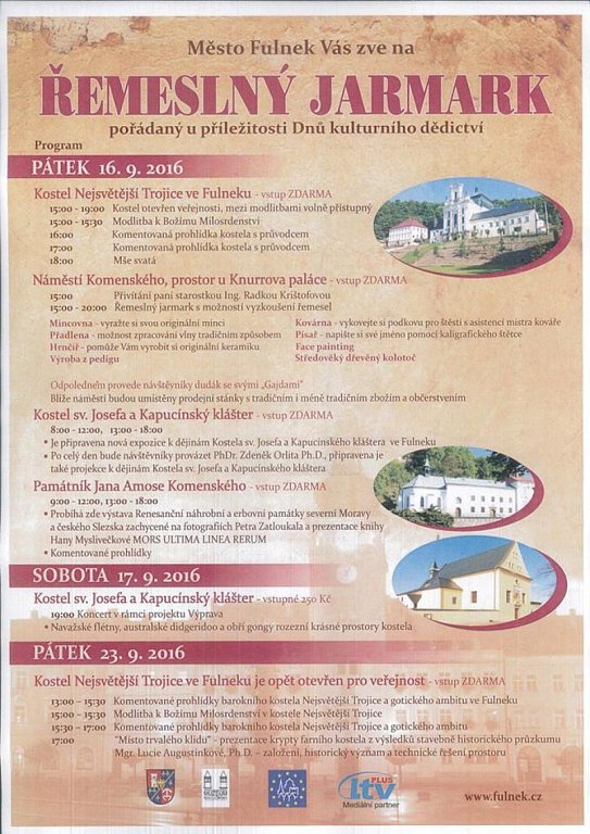 Fulnek 16. 9. 2016 od 15:00 ŘEMESLNÝ JARMARK VE FULNEKU