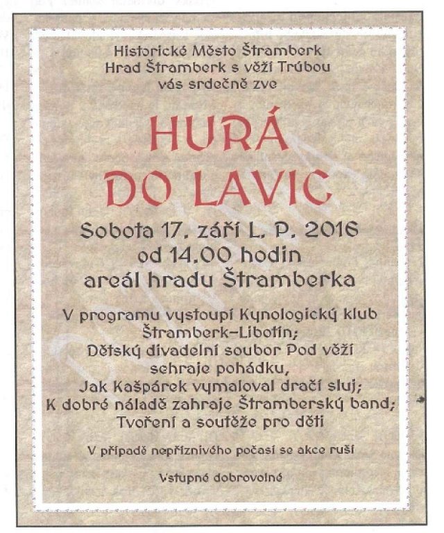 Štramberk 17. 9. 2016 od 14:00 HURÁ DO LAVIC