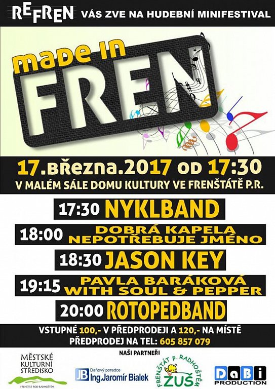 Frenštát pod Radhoštěm 17. 3. 2017 v 17:30 MADE IN FREN – HUDEBNÍ MINIFESTIVAL