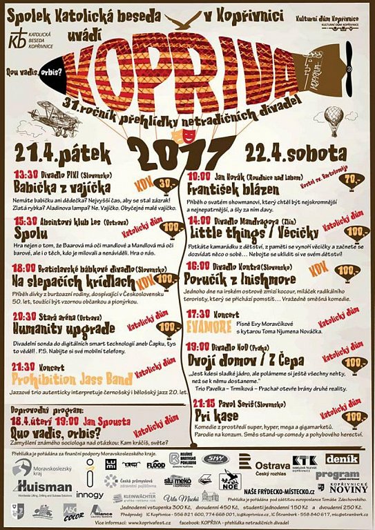 Kopřivnice 21. – 22. 4. 2017 od 13:30 PŘEHLÍDKA NETRADIČNÍCH DIVADEL KOPŘIVA 2017