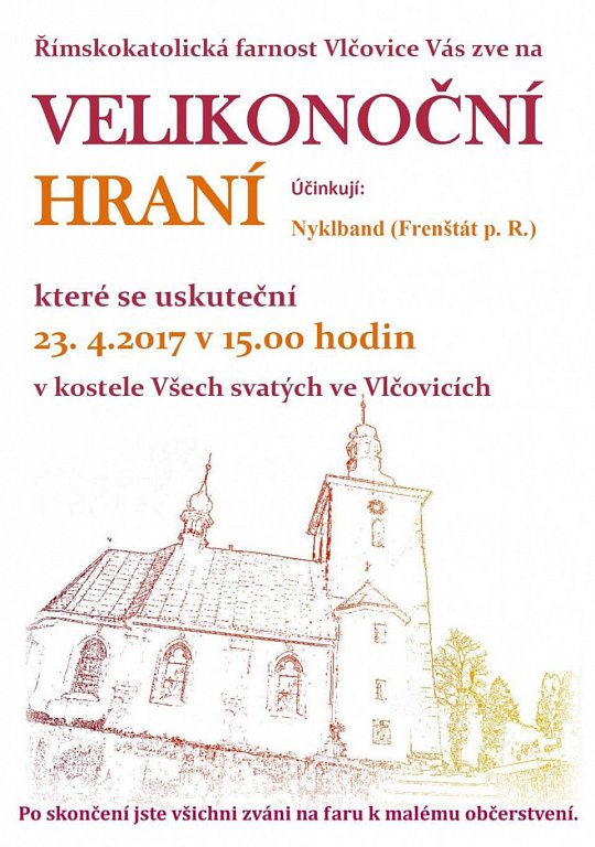 Římskokatolická farnost Vlčovice zve všechny na Velikonoční hraní. Římskokatolická farnost Vlčovice zve všechny na Velikonoční hraní.