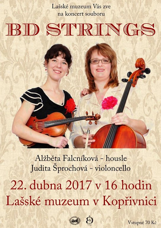 Lašské muzeum Kopřivnice zve všechny na koncert souboru BD Strings, který je součástí cyklu koncertů "Z notového zápisníku". Jde o smyčcové duo, které tvoří violoncellistka Judita Šprochová a houslistka Alžběta Falcníková.