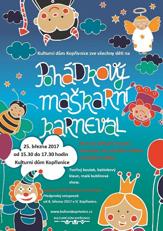 Kopřivnice 25. 3. 2017 od 15:30 do 17:30 POHÁDKOVÝ MAŠKARNÍ KARNEVAL
