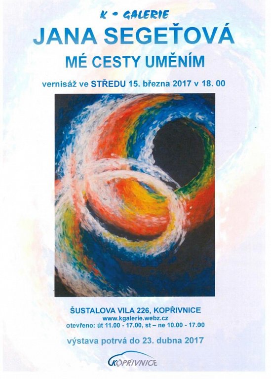 Kopřivnice 15. 3. 2017 – 23. 4. 2017 od 10:00 VÝSTAVA: JANA SEGEŤOVÁ – MÉ CESTY UMĚNÍM
