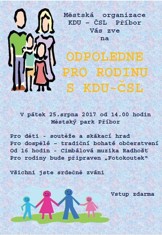 Příbor 25. 8. 2017 od 14:00 ODPOLEDNE PRO RODINU S KDU-ČSL
