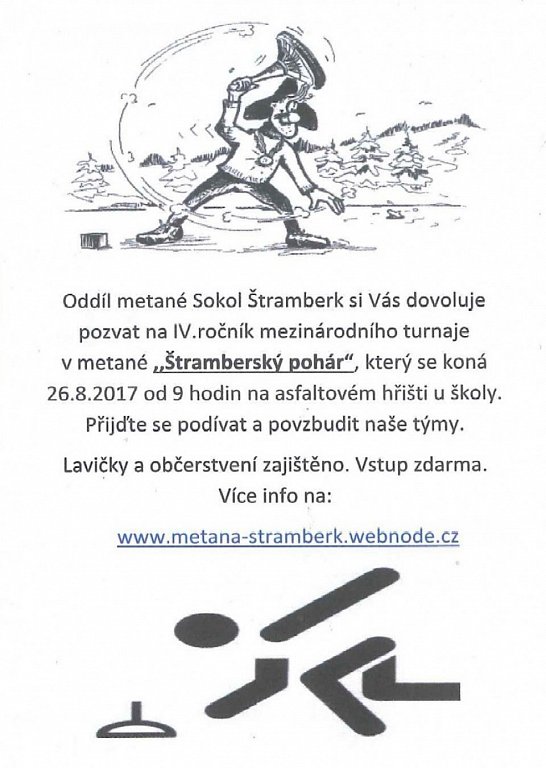 Oddíl metanové Sokol Štramberk si Vás dovoluje pozvat na IV. Ročník mezinárodního turnaje v metané „Štramberský pohár“. Přijďte se podívat a povzbudit naše týmy.