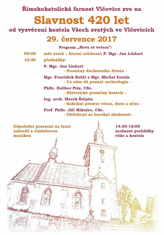 Vlčovice 29. 7. 2017 od 9:00 SLAVNOST 420 LET OD VYSVĚDCENÍ VŠECH SVATÝCH