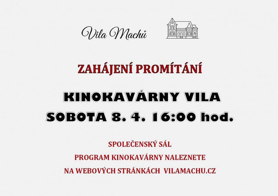 Kopřivnice 9. 4. 2017 od 14:00 do 16:00 KINOKAVÁRNA VILA