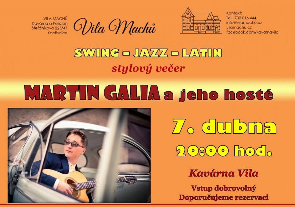 Vila Machů zve všechny na stylový večer s Martinem Galiou a jeho hosty.
