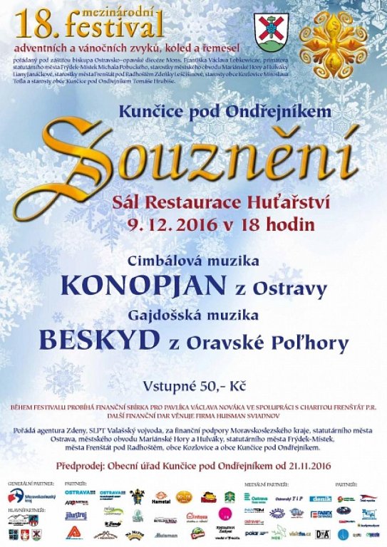 Kunčice pod Ondřejníkem 9. 12. 2016 od 18:00 FESTIVAL SOUZNĚNÍ