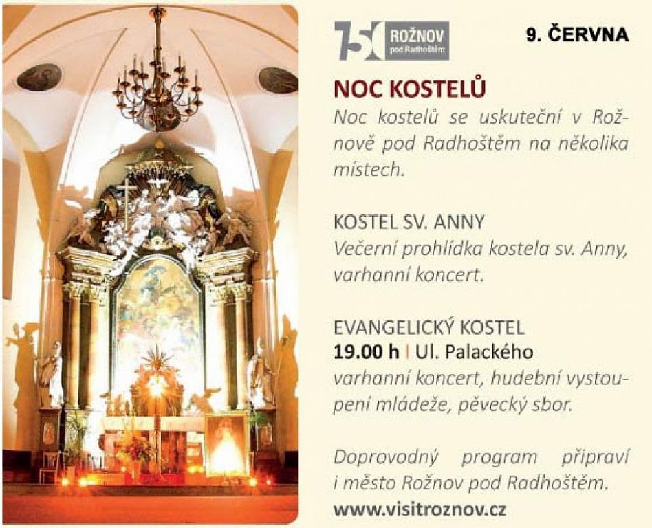 Rožnov Pod Radhoštěm 9. 6. 2017 od 19:00 do 23:59 NOC KOSTELŮ - KOSTEL SV. ANNY