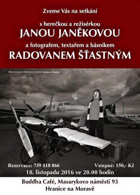 Večerní setkání s herečkou a režisérkou Janou Janěkovou a fotografem, textařem a básníkem Radovanem Šťastným, kteří vás budou večerem nabitým pozitivní energií provázet.