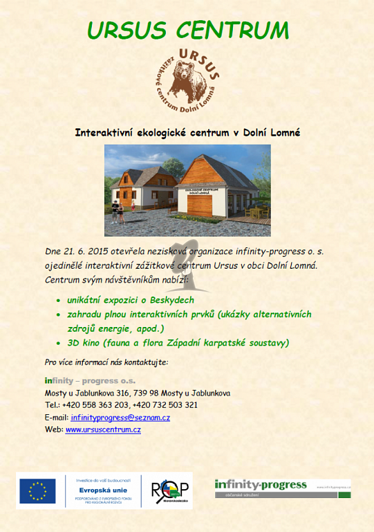 Infinity-progress o. s. a zážitkové centrum Ursus v Dolní Lomné Vás zvou na novou interaktivní expozici. Více informací naleznete na letáku.