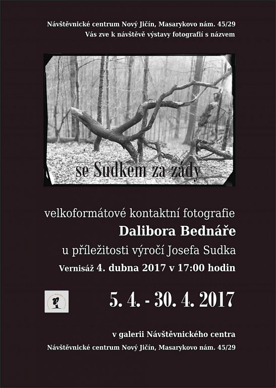 V úterý 4. dubna v 17:00 hodin, v Návštěvnickém centru v Novém Jičíně, bude zahájena výstava velkoformátové kontaktní fotografie Dalibora Bednáře „se Sudkem za zády“. Výstava je pořádána k připomenutí památky významného československého fotografa Josefa Sudka.