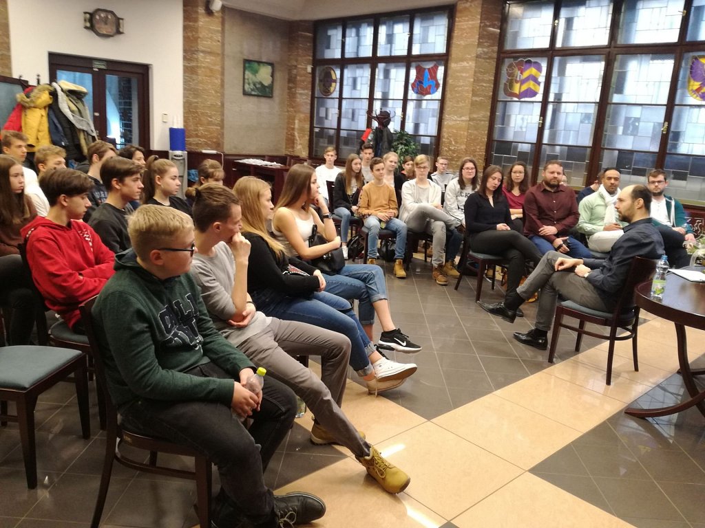 Studenti z partnerského města Ludwigsburg a gymnázia Nový Jičín navštívili v pondělí 11. 2. 2019 budovu radnice, kde je krátkým povídáním o městě Nový Jičín přivítal místostarosta Mgr. Ondřej Syrovátka. Komunikačním jazykem byla angličtina. Po menším občerstvení a předání darů měli studenti možnost shlédnout město z radniční věže a navštívit expozice Návštěvnického centra.