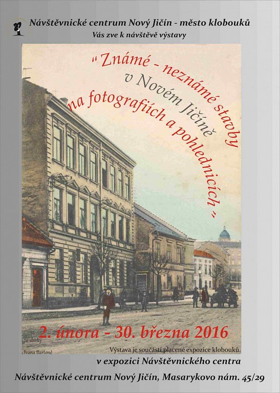 Do středy 30. března 2016 – placená expozice klobouků Návštěvnického centra – výstava s názvem "Známé – neznámé stavby v Novém Jičíně na fotografiích a pohlednicích".