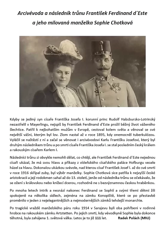 Vitrínu vedle filmového koutku zdobí unikátní sbírkové předměty v podobě klobouků arcivévody a následníka trůnu Ferdinanda d'Este.