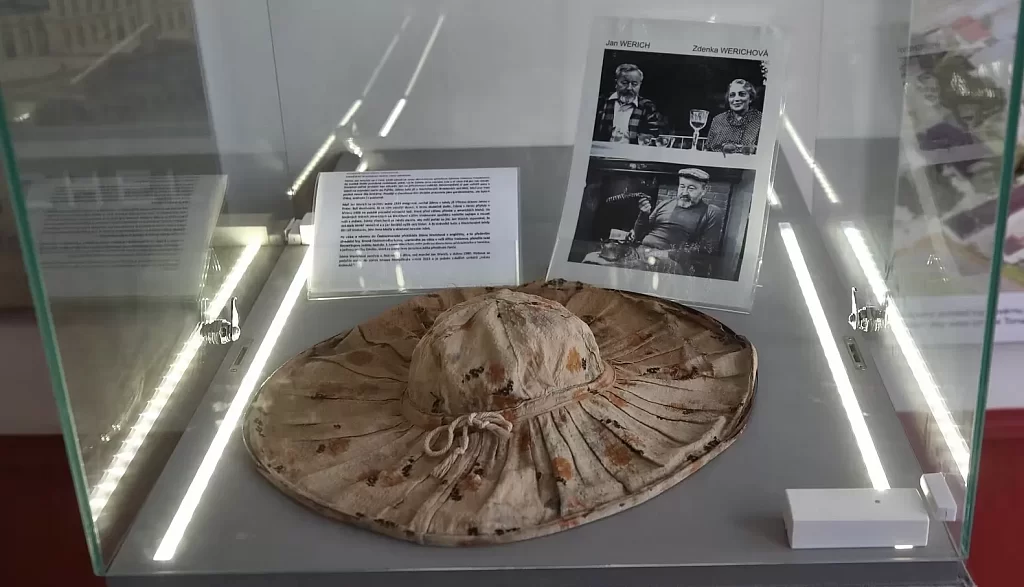 Vitrínu vedle filmového koutku v expozici klobouků zdobí unikátní sbírkový předmět v podobě klobouku Zdenky Werichové, manželky Jana Wericha.