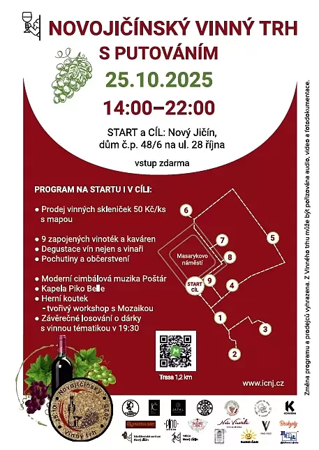 Již za měsíc se můžete těšit na 4. ročník Novojičínského vinného trhu, který se uskuteční 25. října 2025 od 14:00 do 22:00 hodin – a letos podruhé i s putováním!