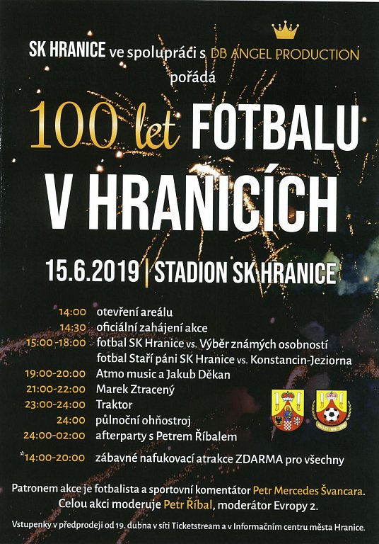 Hranice 15. 6. 2019 od 14:00 100 LET FOTBALU V HRANICÍCH