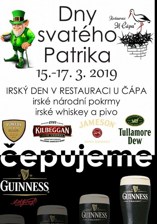Irský den v Restauraci U Čápa. Irské národní pokrmy, Irské whiskey a pivo. Akce potrvá až do 17. 3. 2019.