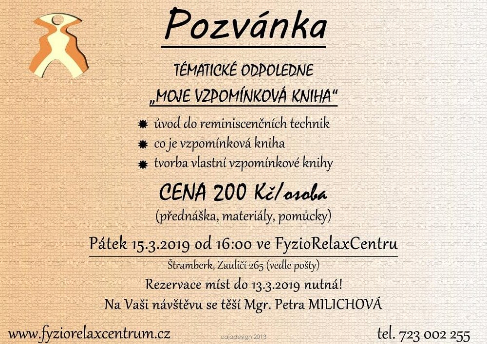 Štramberk 15. 3. 2019 od 16:00 PŘEDNÁŠKA: MOJE VZPOMÍNKOVÁ KNIHA